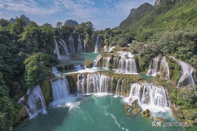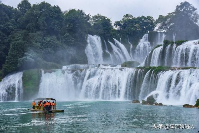 第三就是德天跨國大瀑布,這個位於中越邊境的瀑布,真的是能夠很好的感受大自然帶來的視覺和聽覺強烈的衝擊力。因爲瀑布流水下來,剛好是一條河,在旁邊觀看的話,沒有坐竹排來到瀑布前觀看的那種效果更震撼!坐在竹排上觀看瀑布,那場面真的是非常的壯觀,水流直下,猶如千軍萬馬般的奔騰,那其實真的是能夠觸動遊客內心深處,讓人內心澎湃不已。而且周邊的景色也是特別的美,在河的對面就是越南了,還可以感受到異國風情,真的是一個非常棒的旅行地,也是深受遊客的喜愛。