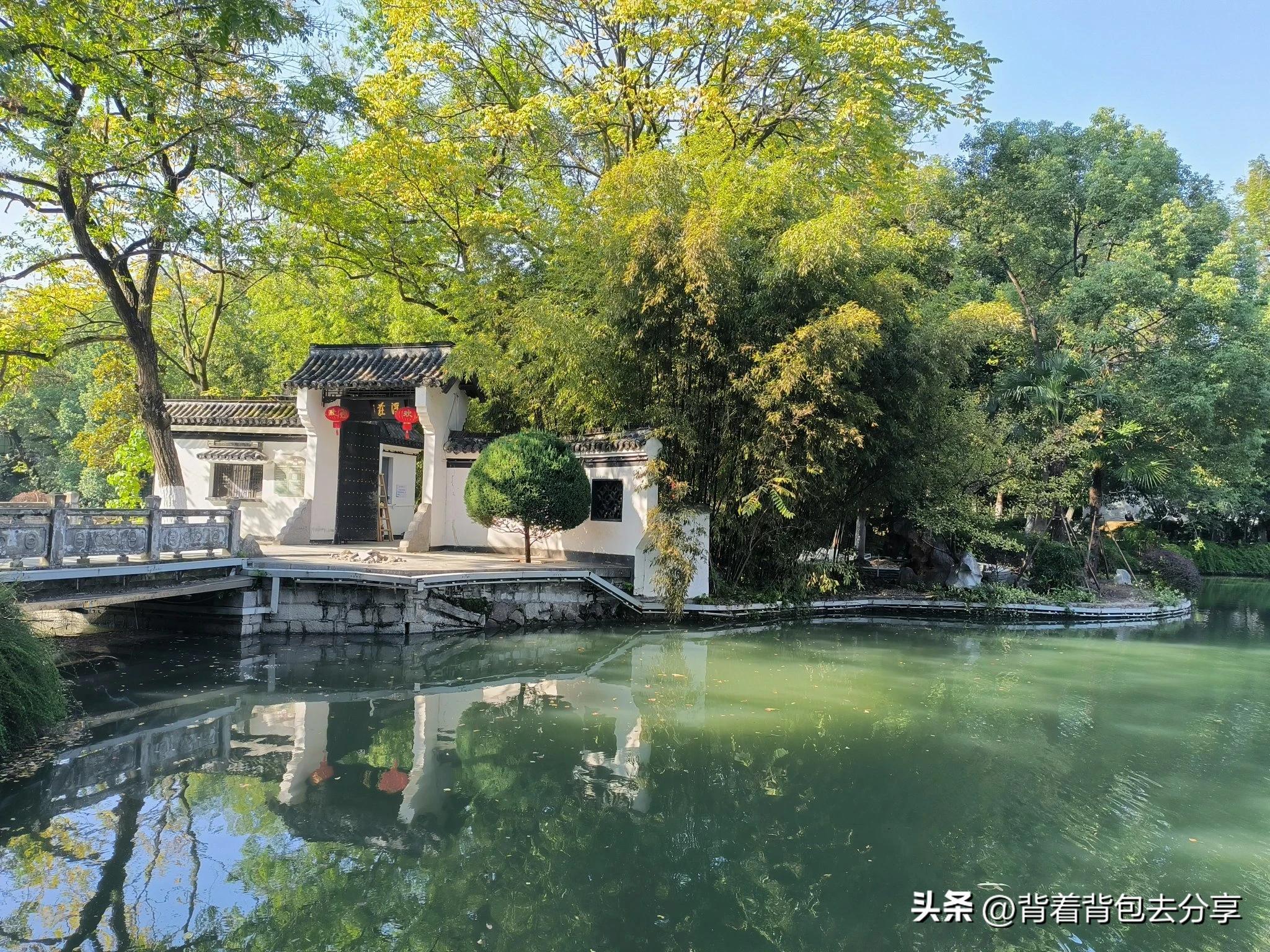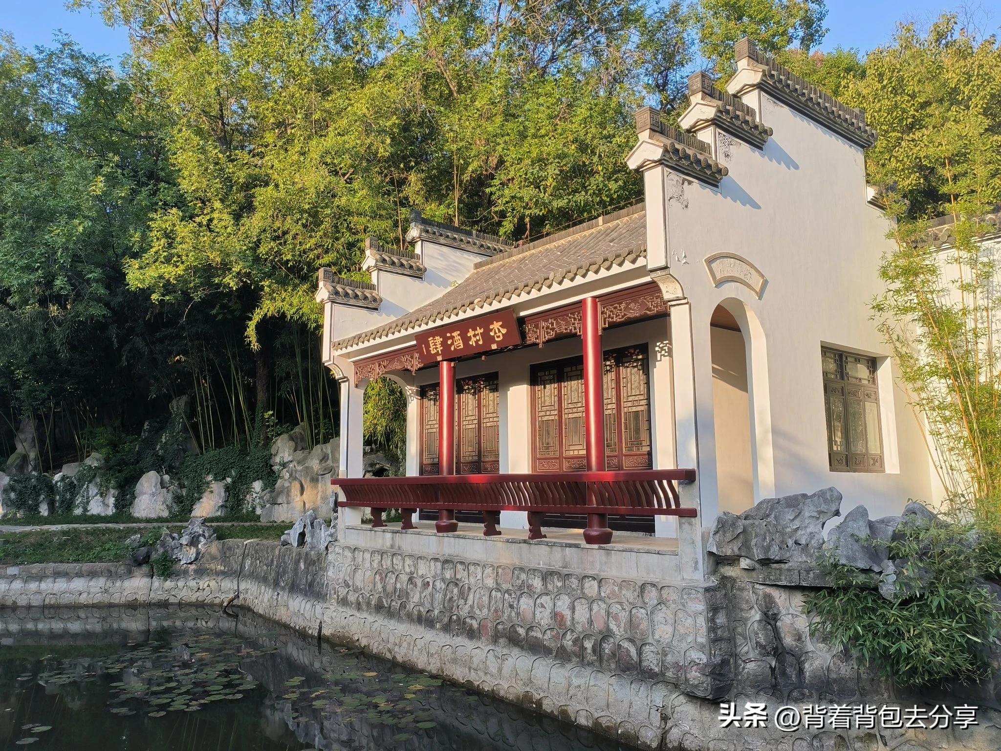 池州園緊靠黃山園,在這裏最具有特色代表的是地藏王菩薩,沿山路向上攀登,是地藏王菩薩的塑像,後方有殿宇,下山方向的入口處,有一牧童坐在牛背上,一手遙指遠方的雕塑,旁邊有杏花酒肆,從梅公橋遠觀,美美的園林風光