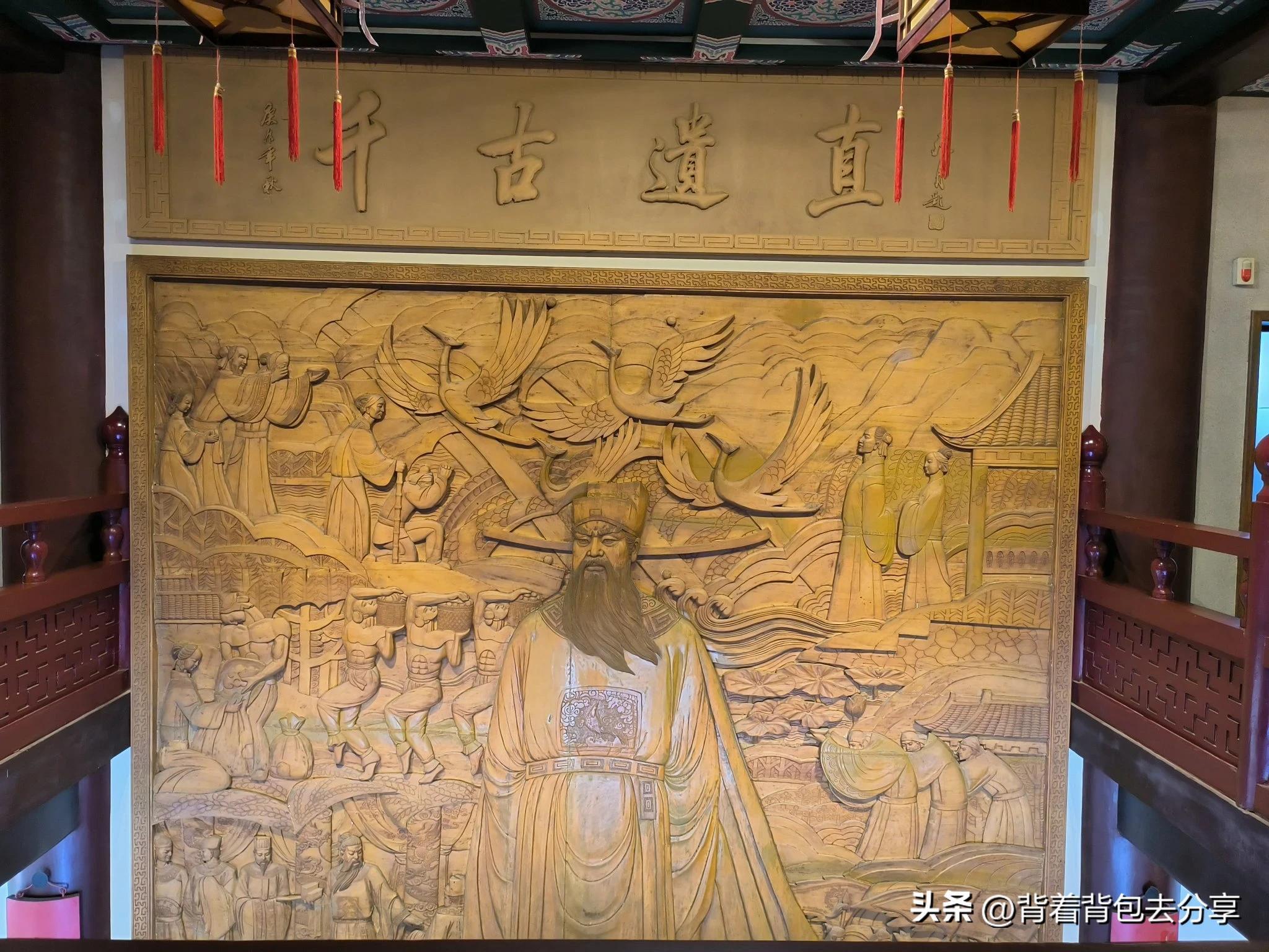 繼續向前,來到了主體建築清風閣,閣內一層有一幅大型椴木浮雕-清風贊,這所浮雕主要由兩個部分組成,中心爲包公浮雕像,背景展示的是包公生平事蹟,有回鄉敬孝.審牛舌案.陳州放糧等片段,看過一層,可以直接乘坐電梯去往最高層,當你走出閣內,沿四周的走廊,可以俯瞰合肥城區風光,以及整個包公園的秀麗景色,非常的漂亮