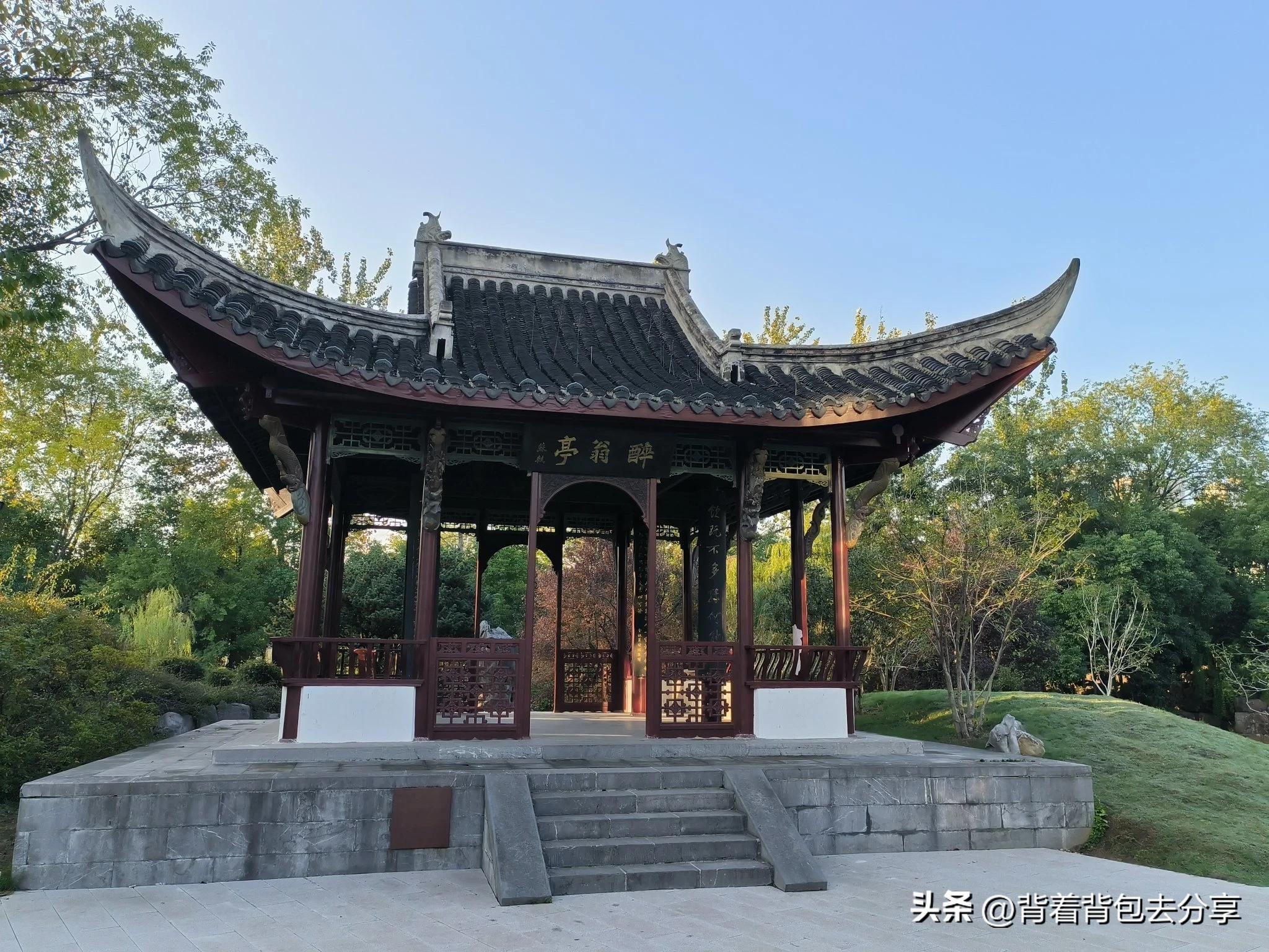 過安慶園之後,來到了巢湖園與滁州園,在這裏可以看到醉翁亭,旁邊是世紀橋和世紀廣場,現代建築的風格,連接東西兩個園區,這裏是徽園的正門,5 根高 32 米的花冠狀球柱的壯觀,它們象徵着 50 年來,安徽各項建設取得的豐碩成果,漫步世紀橋,步行向北跨過巢湖橋,便來到了六安園和淮南園