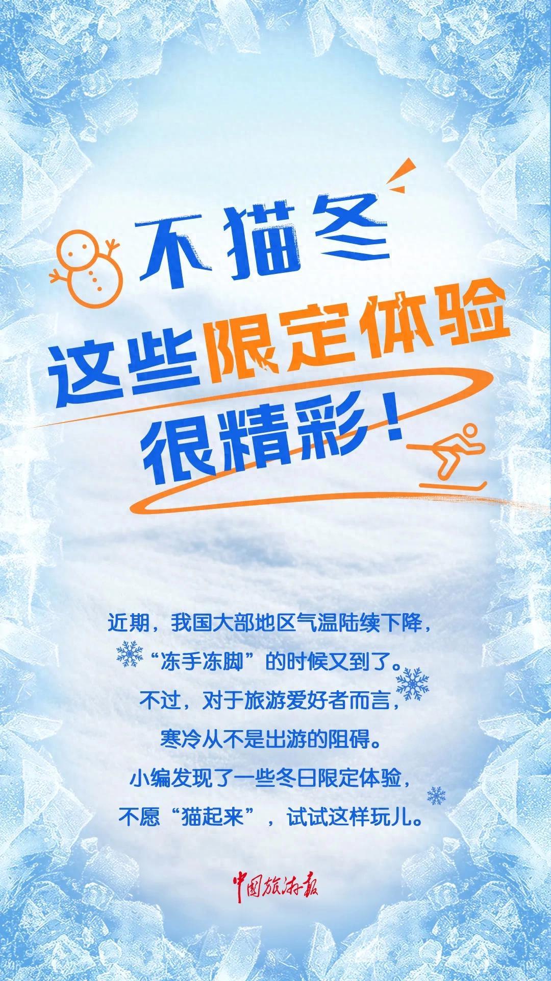 近期,我國大部地區氣溫陸續下降,“凍手凍腳”的時候又到了。不過,對於旅遊愛好者而言,寒冷從不是出遊的阻礙。小編髮現了一些冬日限定體驗,不願“貓起來”,試試這樣玩兒↓↓(作者:李慶禹 劉曄;編輯:曹雪文)