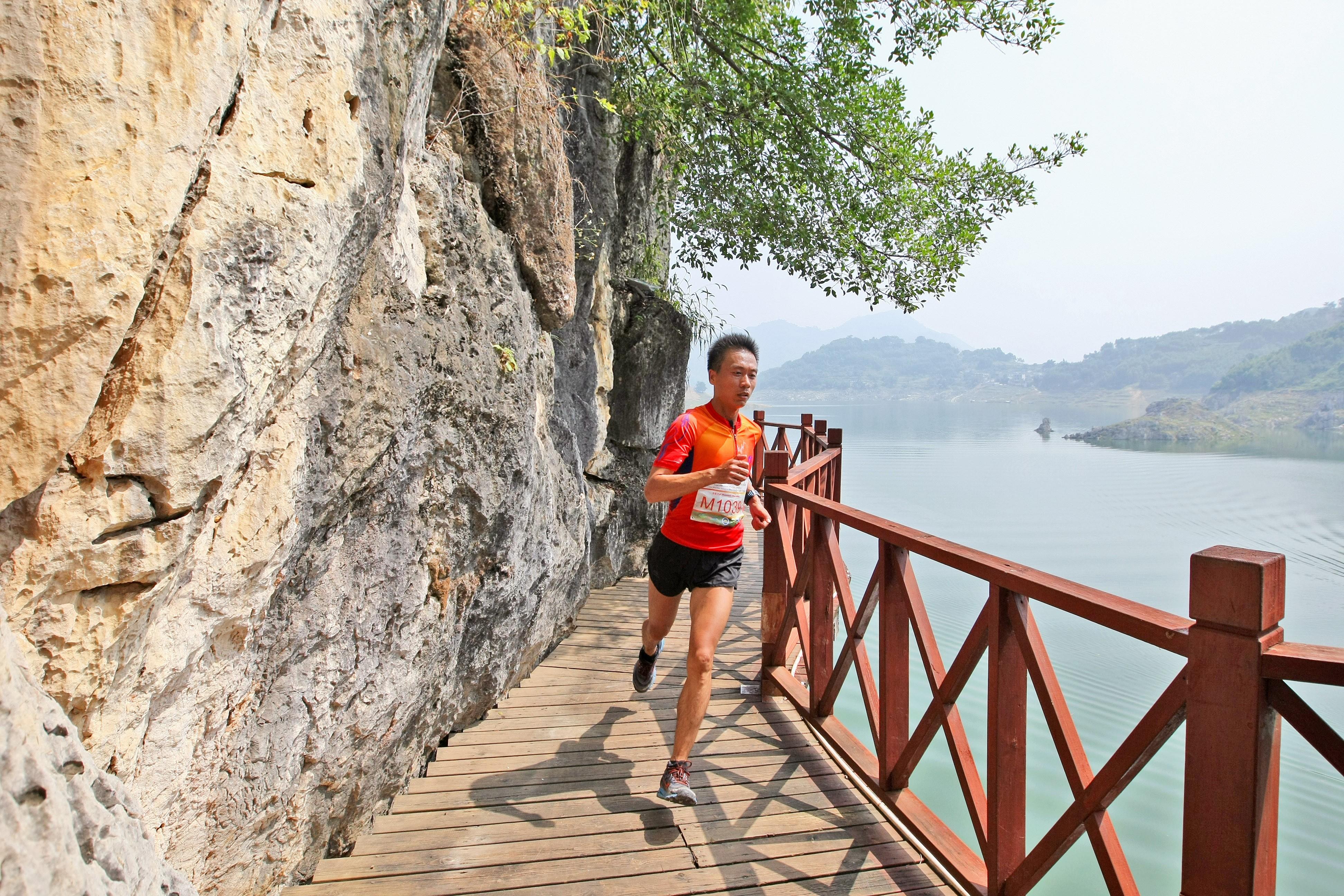 馬拉松選手途經貴州興義萬峯湖景區 本報記者 陳晨 攝