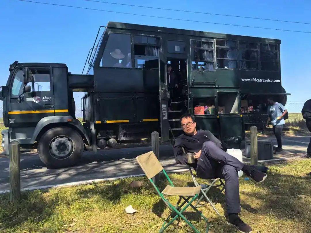 我們⽤車是重型卡車改裝⽽成的探險卡車,能攜帶充足的露營物資,具備長途馳騁非洲沙漠地區的功能,鋼鐵車身高大堅固,視線開闊,⾜以應對⾮洲惡劣的天氣和路況。
