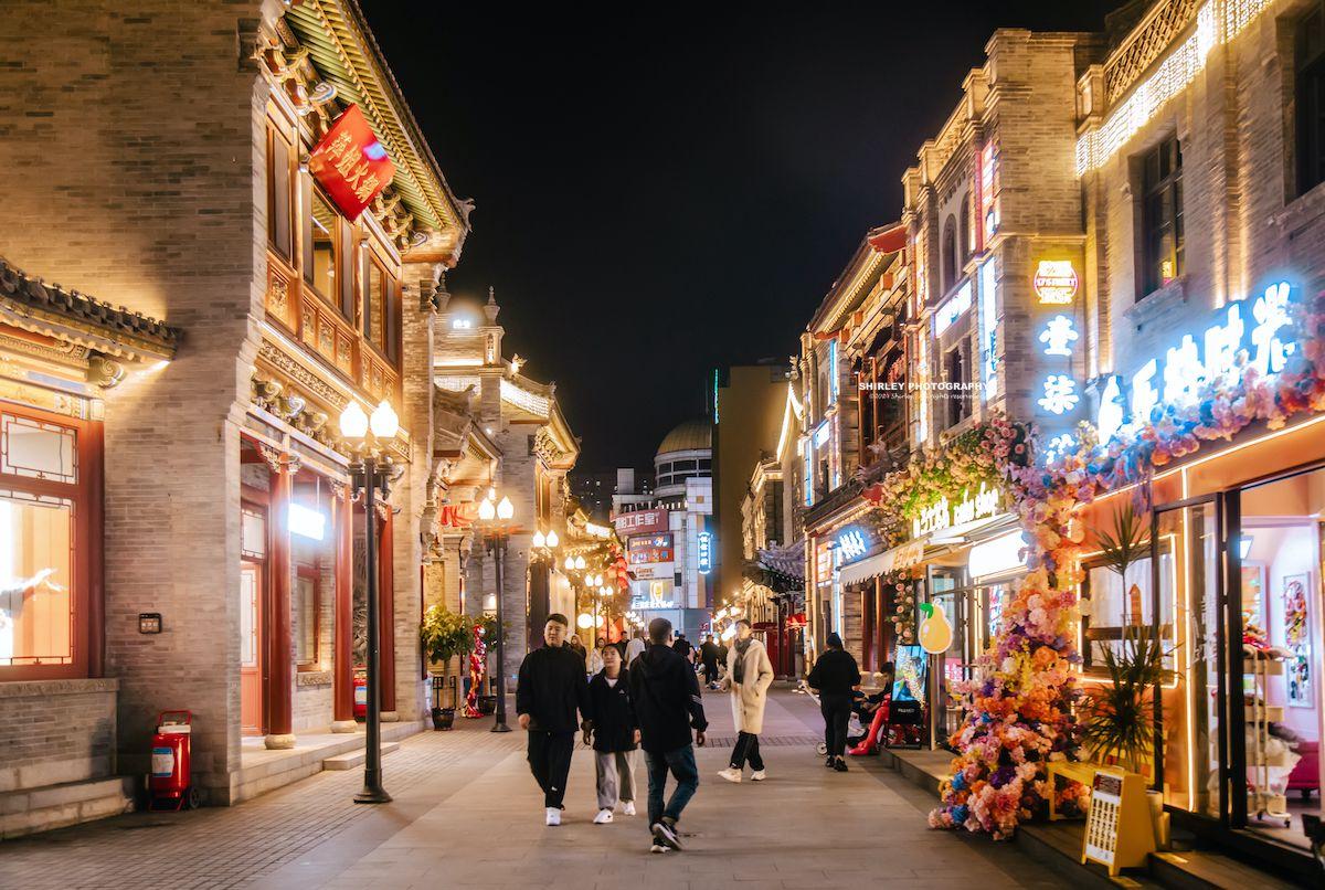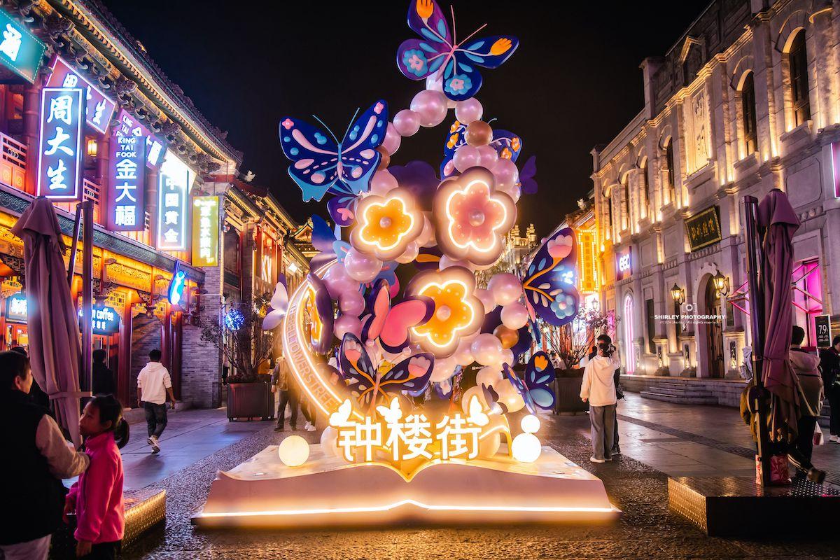今天的鐘樓街不僅保留了原來的歷史底蘊,更加入了新潮時髦的元素。街區引入了衆多首店和時下熱門品牌,其門頭換上了古色古香的外衣,看上去有特色又不違和。大量網紅打卡裝置分佈街道的各個角落,爲遊客和本地消費者提供了情緒價值。夜晚的快閃演出吸引大量遊客駐足圍觀,點燃了一個個動感活力的夜晚。