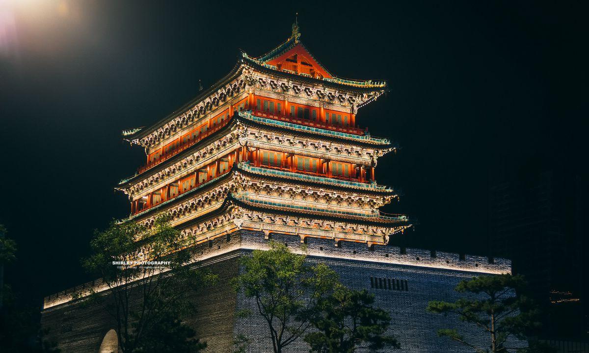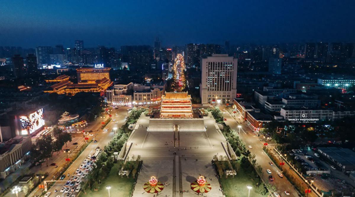 夜幕降臨,首義門亮起了照明燈,磅礴壯美的錦繡太原城讓人讚歎。