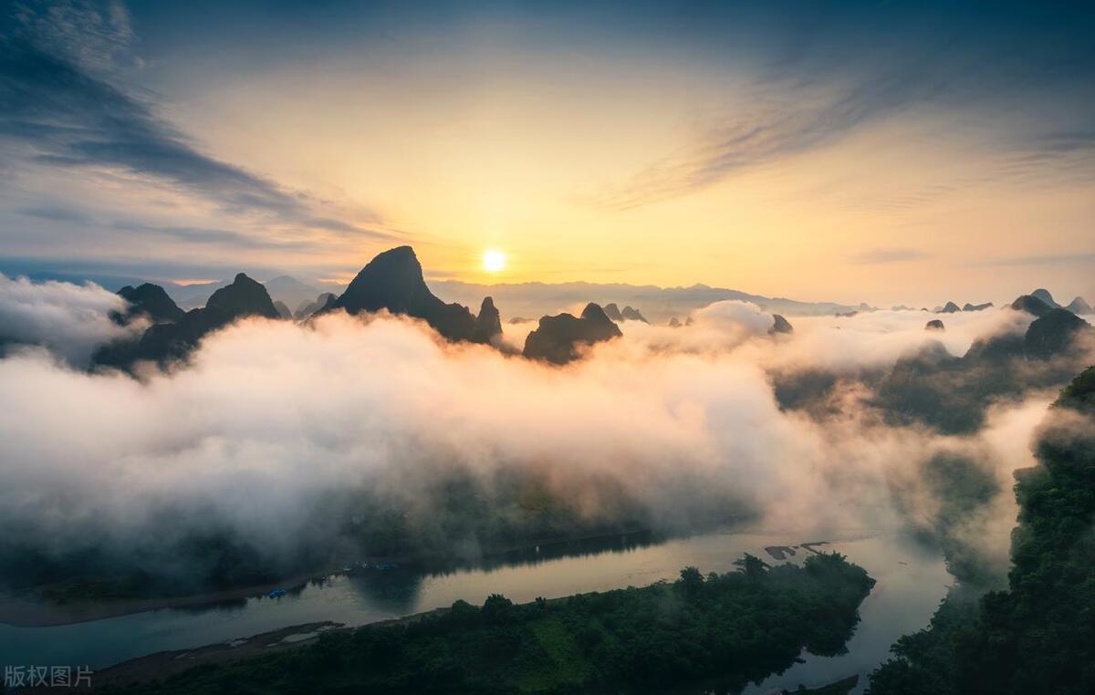 相公山,位於興坪鎮碼頭對面,在黃布倒影和九馬畫山兩景點之間,別看海拔只有216米,卻是灕江最佳觀景平臺,在這裏能看到灕江最美的光影、雲海和日出,就是60元門票有點貴。