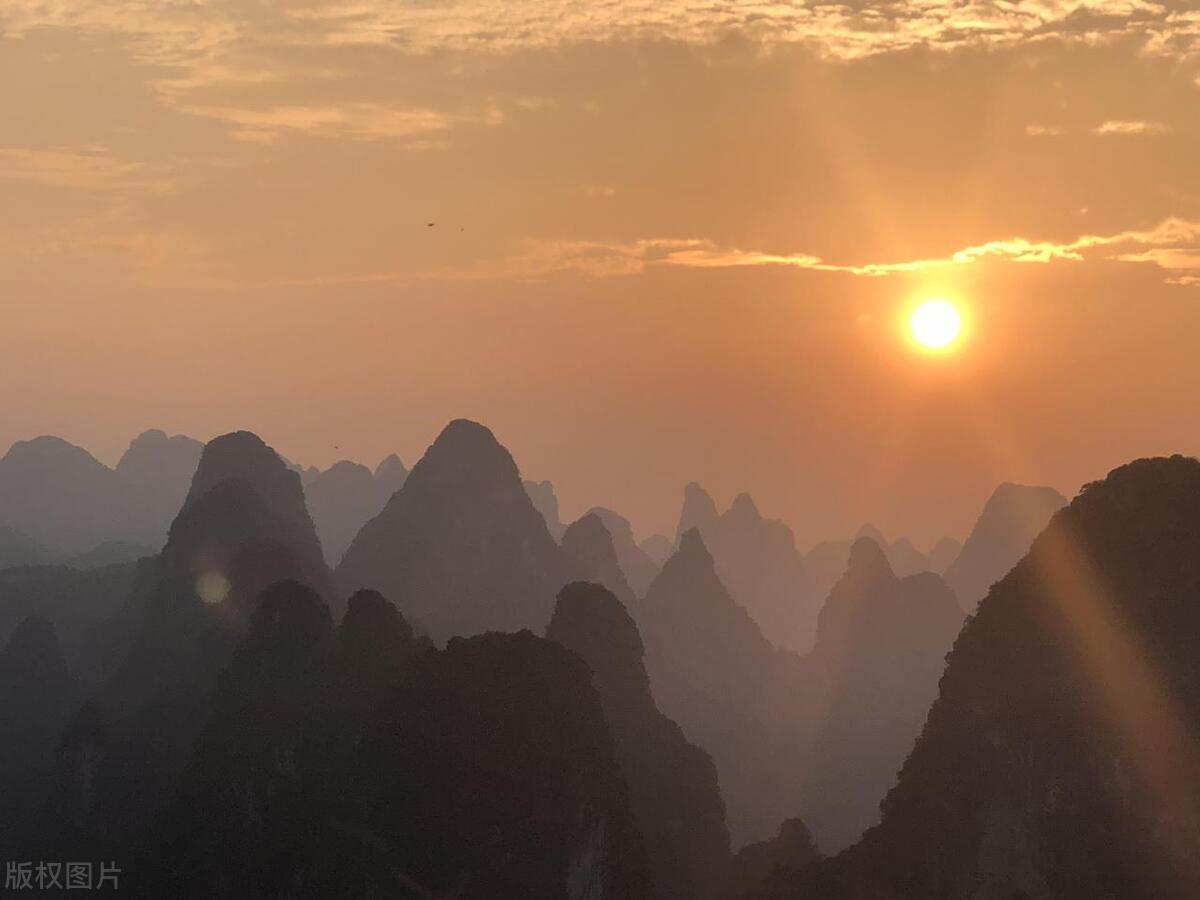 老寨山觀日落,老寨山海拔也不高,只有300多米,但因爲山頂能看到絕美的日落,而被稱爲陽朔看日落的第一觀景平臺,這裏不是景區,不收門票,入口在興坪的渡輪碼頭附近,但山路陡峭,有一千多個階梯,爬起來還是比較耗體力。