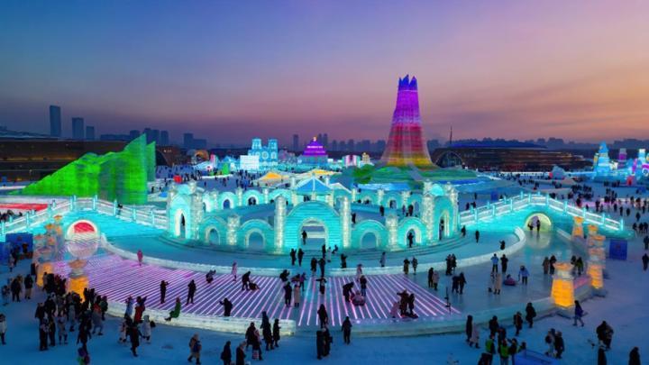 遊客在第二十五屆哈爾濱冰雪大世界遊玩 哈爾濱冰雪大世界 供圖
