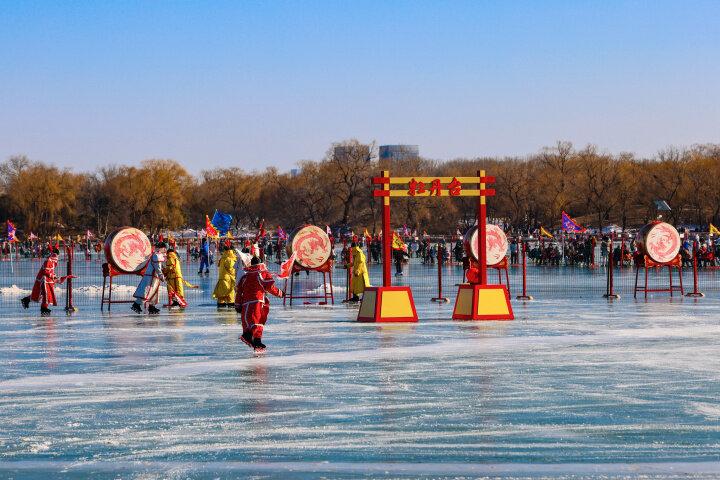 “冰嬉”起源於乾隆年間,文獻中將清宮特有的多項冰上運動統稱爲冰嬉。隆冬時節,遊客們可以走進北京北海、什剎海、圓明園、頤和園等名勝之地,運氣好的話還會邂逅身穿八旗華服的演員,冰嬉盛景再現古風神韻。