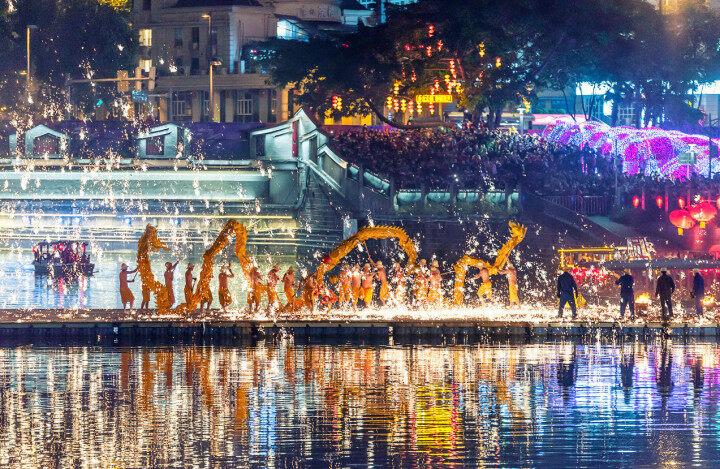 寒風中,鐵花飛濺、火龍翻騰、高蹺蹁躚、秧歌舞動……一場場非遺演出點燃現場氛圍,釋放冬日激情。