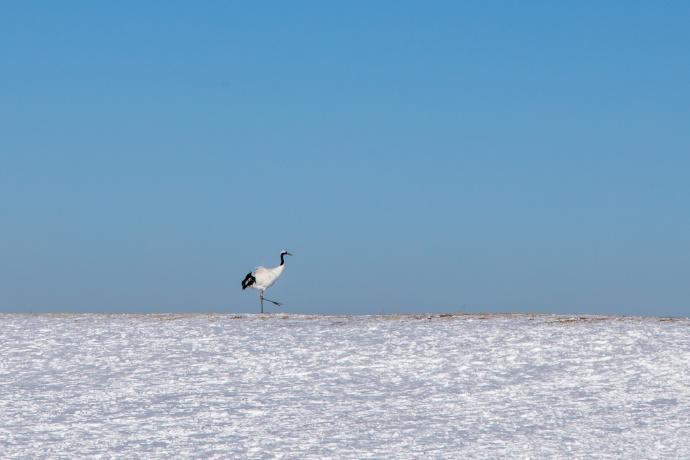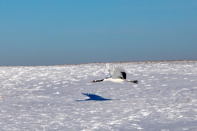 “晴空一鶴排雲上,便引詩情到碧霄。”碧空如洗,白鶴高飛,蘆葦隨風飄蕩,銀裝素裹的扎龍,有着令人心神盪漾的美。