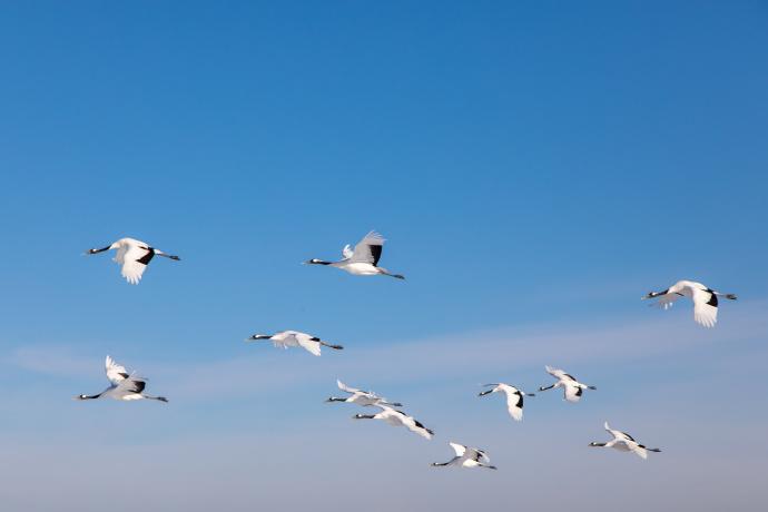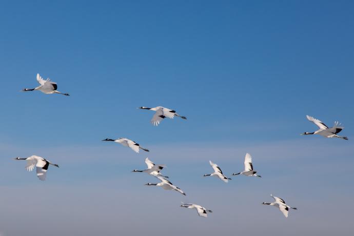 黑龍江扎龍生態旅遊區:碧空如洗 白鶴高飛