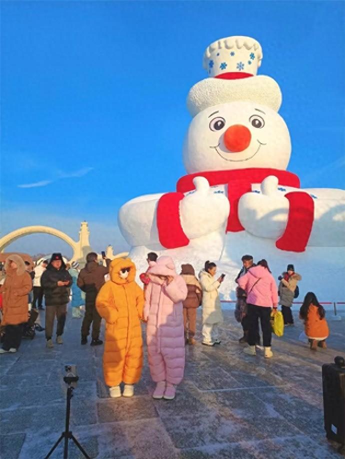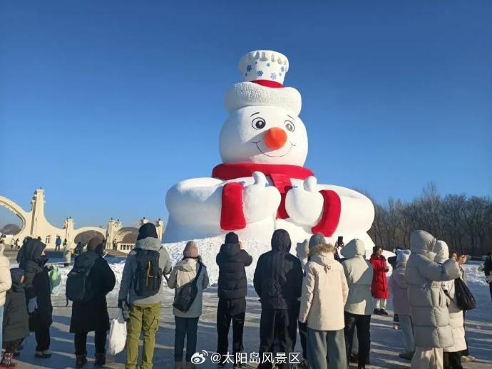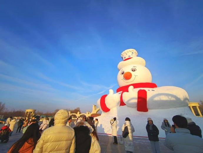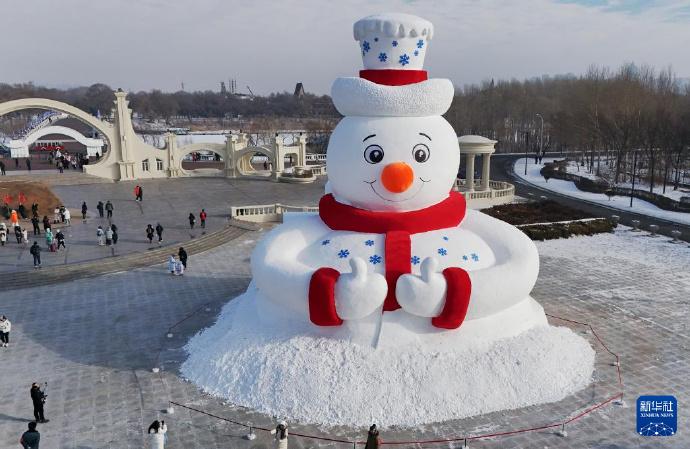 近日,哈爾濱第一個大雪人“雪人先生”在哈爾濱太陽島落成。哈爾濱超大雪人用雪量4000立方米,高20米,頭戴雪花禮帽,圍着大紅圍巾,可愛極了!大雪人一經亮相,便吸引了許多遊客前來打卡。