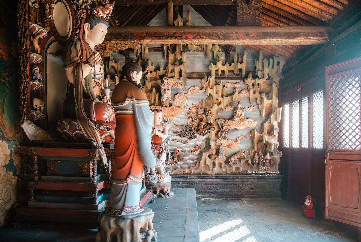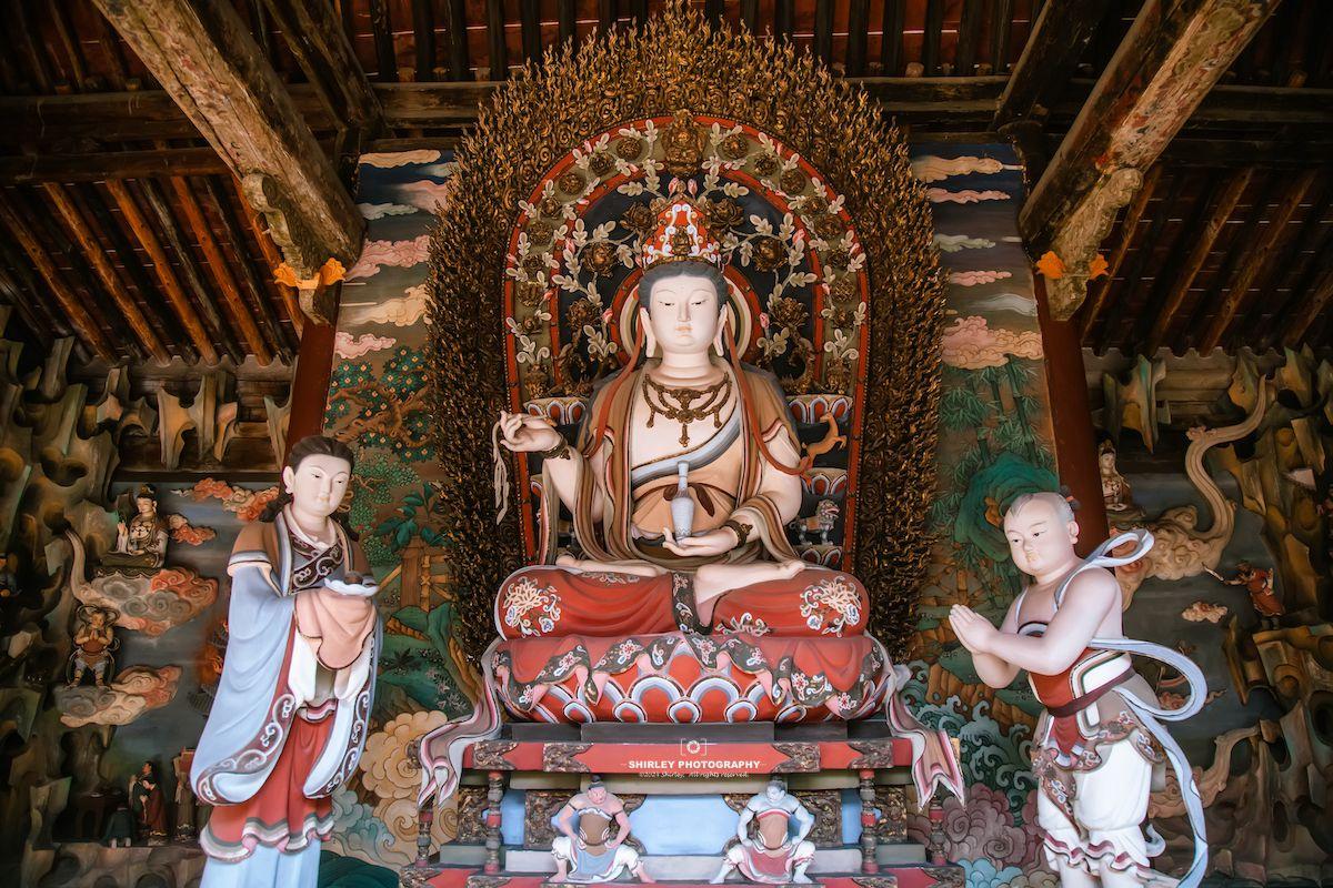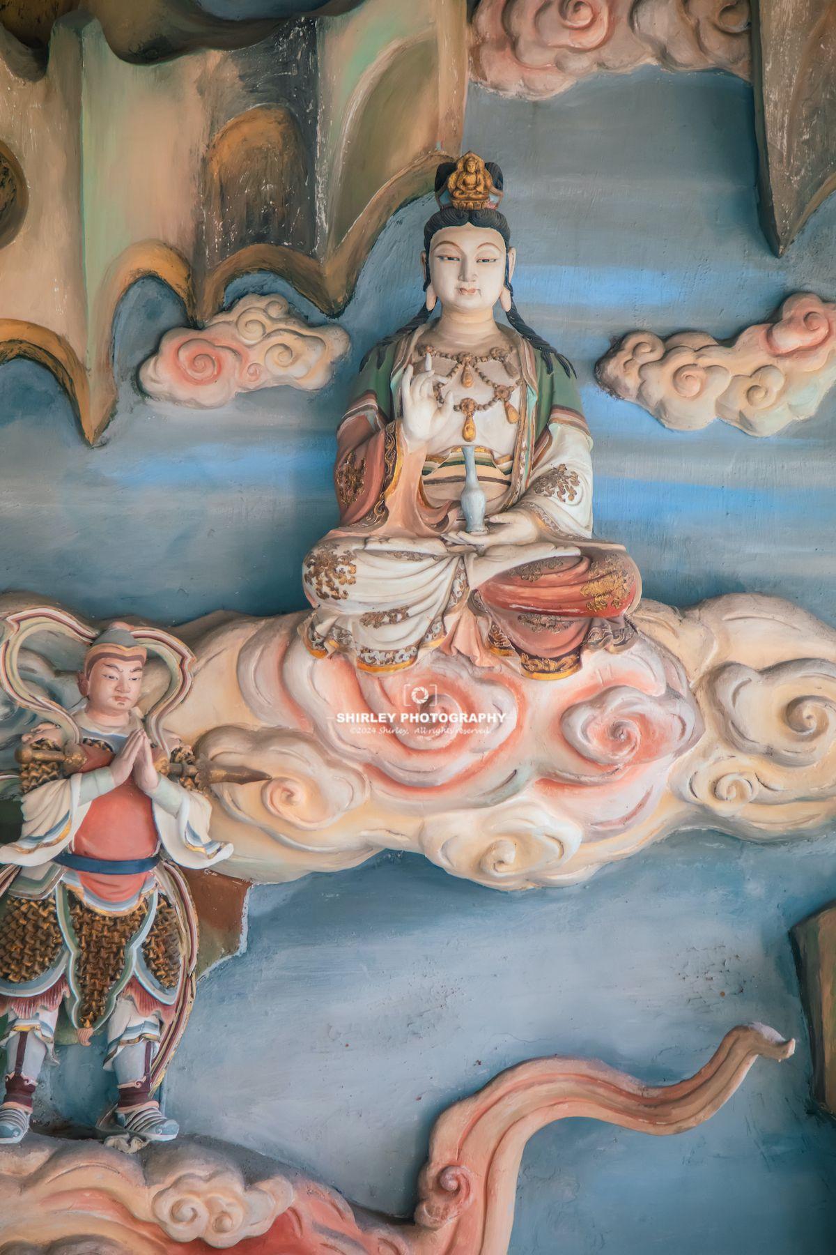 東西配殿亦能欣賞到“十六應化觀音”貼壁掛棚懸塑,不少細節很值得駐足細品,有陽光照進殿內時更是美輪美奐,空間彷彿有了神性。這些懸塑雖是後人所作,但是同樣造型靈動惟妙惟肖,復建得很有誠意。