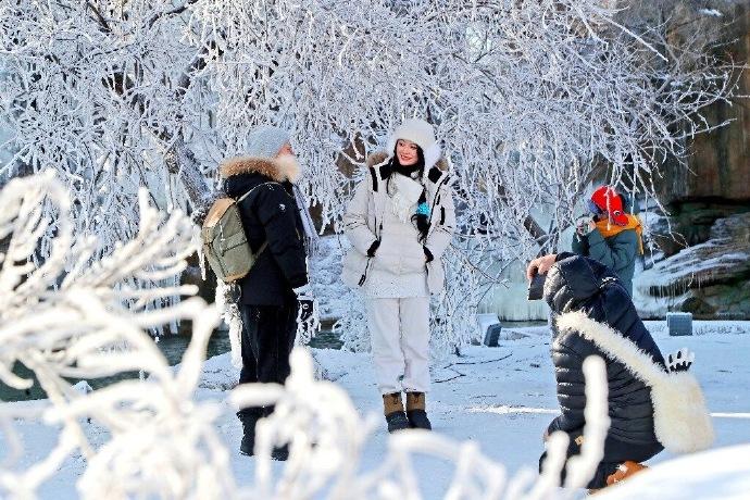近日,吉林市霧凇島景區迎來了一年中最美也是最熱鬧的季節。景區內大大小小的冰瀑、雪雕分佈四處,獨特的霧凇景觀好似萬千梨花綻放,與靜靜流淌的松花江水相互映襯,宛如一個夢幻般的冰雪童話世界,吸引各地遊客前來打卡。