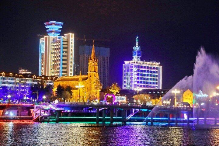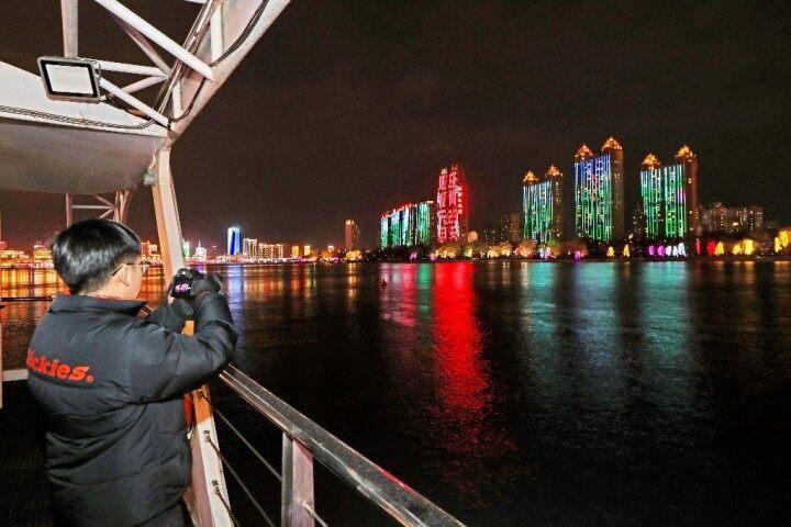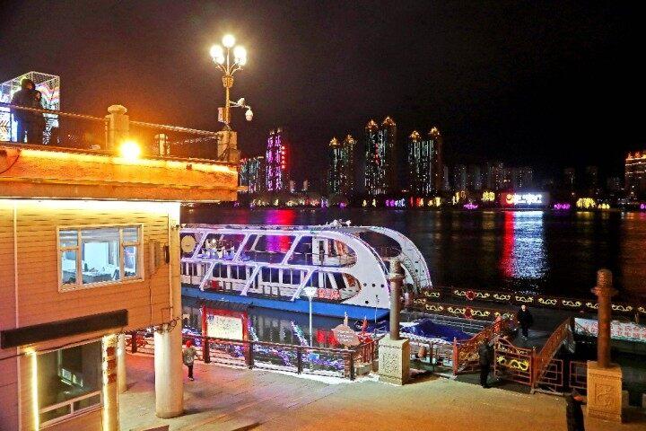 夜遊松花江 記者 陳晨 攝