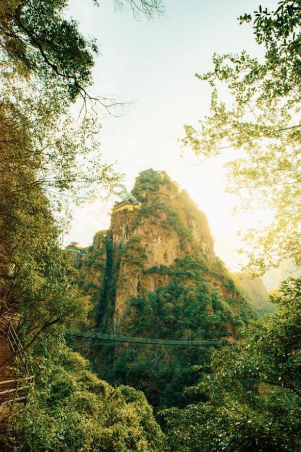 沿階而上,一路青山綠水,不過途中的“金鎖橋”“一線天”“空中玻璃”,也會適時給予感官一些小刺激。
