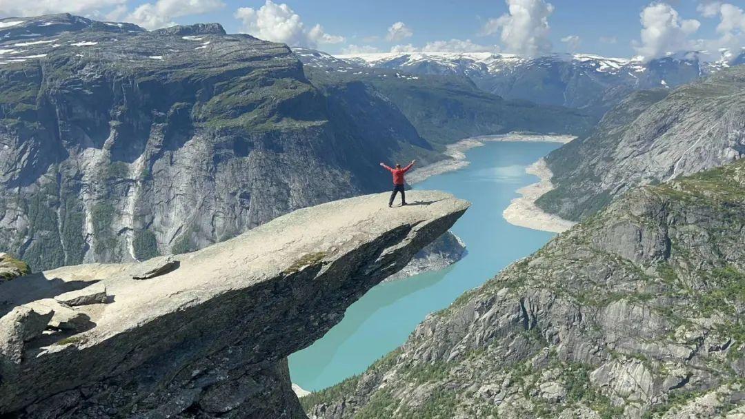 挪威的三塊石頭:惡魔之舌、佈道石、平衡石都以戶外活動的方式走了個遍。尤其是惡魔之舌記憶深刻。惡魔之舌是三塊石頭最難到達,爬升海拔最高的景色。最基本的行程是,從山腳坐交通車5公里爬升約600米到達徒步起點,開始徒步到惡魔之舌,來回20公里,爬升800米,但是我不想錯過這麼好徒步線路。在山腳下預訂了二晚民宿,晚上到達民宿,第二天早上七點,不坐交通車,直接徒步5公里,爬升600米,到達徒步起點,再徒步10公里纔到達惡魔之舌景點,這個形成於冰河時期的奇特石頭,有着全世界獨一無二的造型和鼎立於世界之巔的位置,站在這裏可以看到挪威大氣瑰麗的壯美山河,這種驚心動魄的美,需要你歷經艱辛、堅持不懈、一路向前才能獲得。