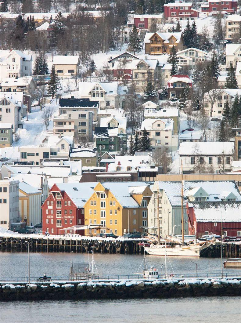 ●【特羅姆瑟】,遊覽有着 “北極之門”之稱,被列爲八大至佳極光觀測地點的挪威極光之都--特羅姆瑟. 特羅姆瑟是挪威北部的海港城市,一座充滿了文化和歷史氣息,被羣 山、峽灣和羣島所環繞的城市,它曾是北極探險的停靠地,也是北極圈內很繁華的城市。特羅姆瑟是挪威甚至整個北歐地區最適合看北極光的地方。每年9月初到來年4月初是適 合看北極光的時間,特羅姆瑟漫長的冬季黑夜大大增加了能追蹤到北極光的機會。特羅姆 瑟位於北極圈以北,但是因受墨西哥暖流的影響,氣候稍顯緩和。漫長冬季的黑暗帶來的憂鬱也會隨着夏季神奇的午夜陽光而一掃而光。