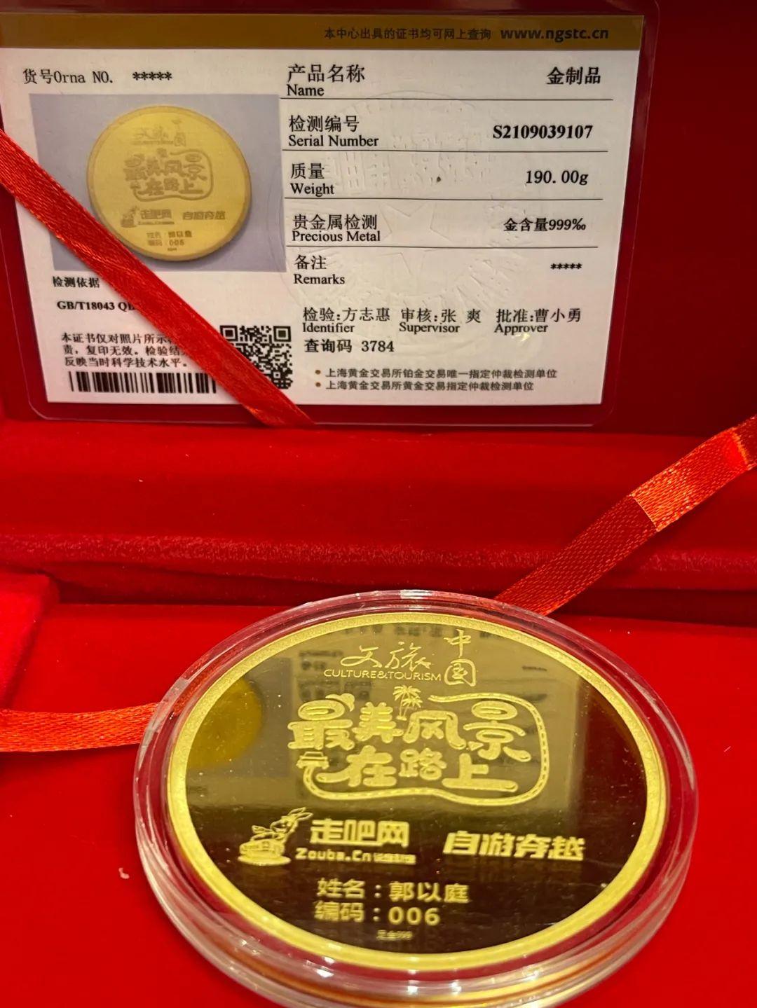 環駕結束後,我自費10萬元打造一塊環駕中國的純金紀念金牌。
