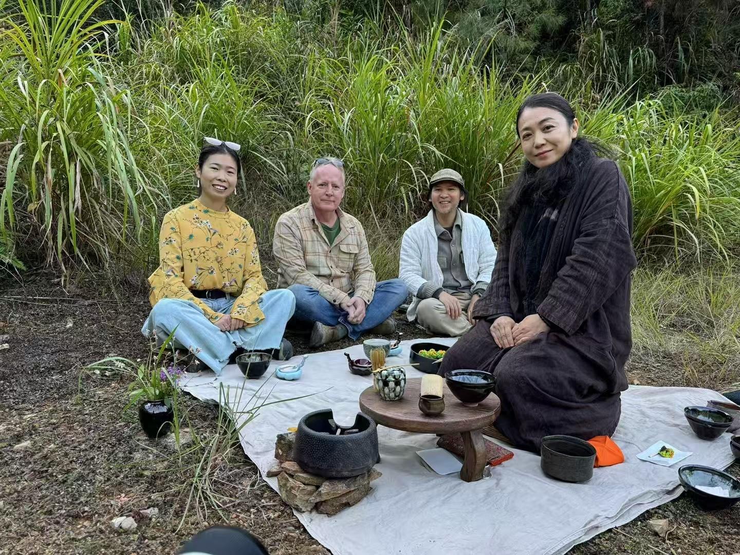 高柳綾緒(右一)與外國藝術家們品茶道 受訪者 供圖