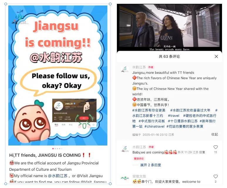 江蘇文旅以“水韻江蘇”爲名片,發佈英文帖文“Hi, TT friends, JIANGSU IS COMING!”