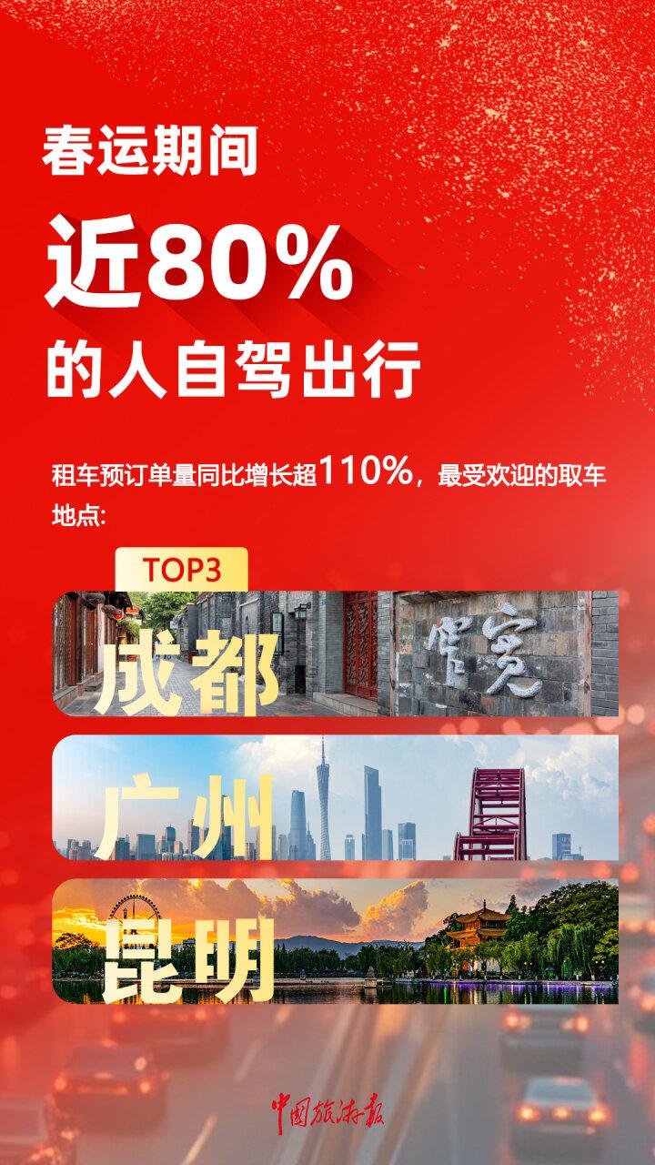 從春運租車預訂情況來看,截至1月14日,預訂單量同比增長超110%。其中,最受歡迎的取車地點前三名爲成都、廣州、昆明。旅遊城市正逐漸成爲越來越多人春節期間租車自駕的首選地。(數據來源:攜程租車)