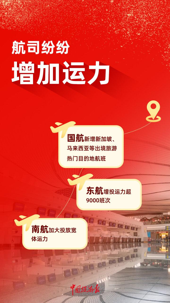 各大航司通過加班、機型換大等方式增加運力。春運期間,國航計劃新增航班以滿足旅客赴新加坡、馬來西亞等出境旅遊熱門目的地的出行需要;東航累計將增投運力超9000班次,其中國際及地區航班量預計將恢復至2019年的103.8%;南航將加大投放寬體運力,主要投放在北京大興至廣州、三亞、深圳、成都雙流等國內航線,以及北京大興至倫敦、阿姆斯特丹、悉尼、墨爾本等國際航線。
