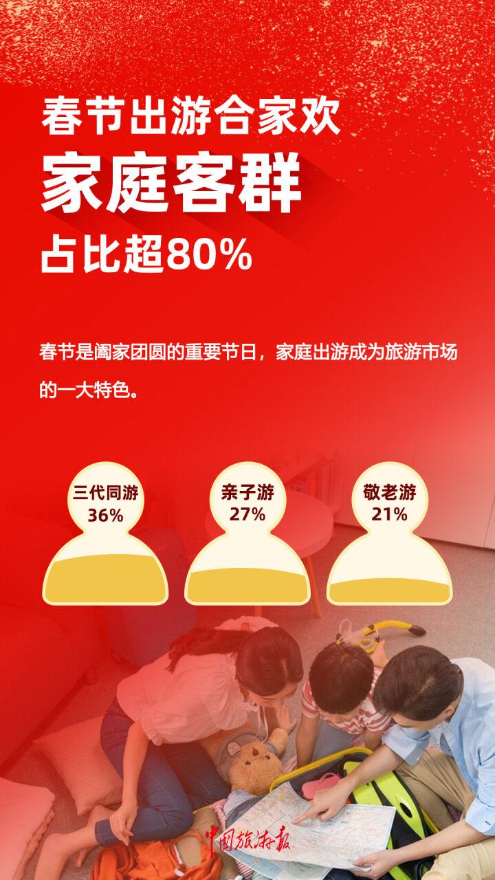 春節是闔家團圓的重要節日,家庭出遊成爲旅遊市場的一大特色。春節出遊用戶中,家庭客羣佔比超八成。其中,老中幼三代同遊、親子游的現象尤爲突出,出遊人次佔比分別達到了36%和27%。此外,還有一部分青年用戶會選擇在春節期間陪父母或長輩一同旅行,這部分人羣的佔比爲21%。(數據來源:《2025春節旅遊消費趨勢報告》)