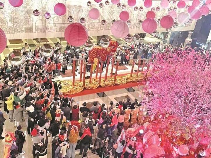 舞獅表演是廣州花園酒店春節假日的招牌活動,吸引大量客人觀看打卡 受訪者 供圖