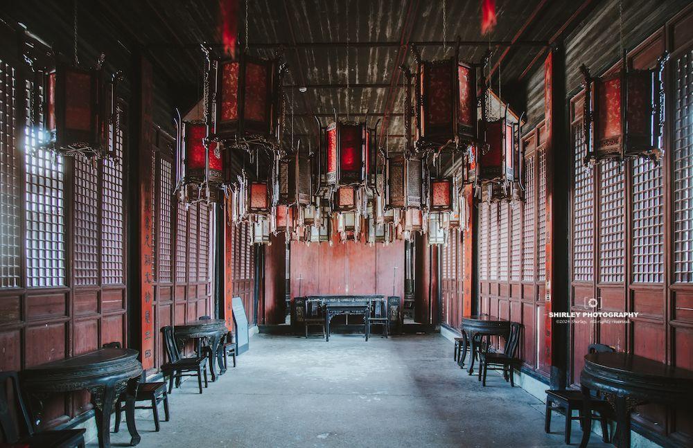 通常我們去盧宅只能看到樹德堂內的復刻品,正品每四年纔會拿出來展出一次。每逢閏年新春至元宵節期間,這盞堂燈的正品會懸掛於肅雍堂內並限時點亮。通過斜角屏風明鏡相互輝映,華光四溢,中式審美讓人美到失語。每逢點燈,全國各地的遊客都會趕來東陽爭相目睹這一盛景,下一次點燈要到2028年了。