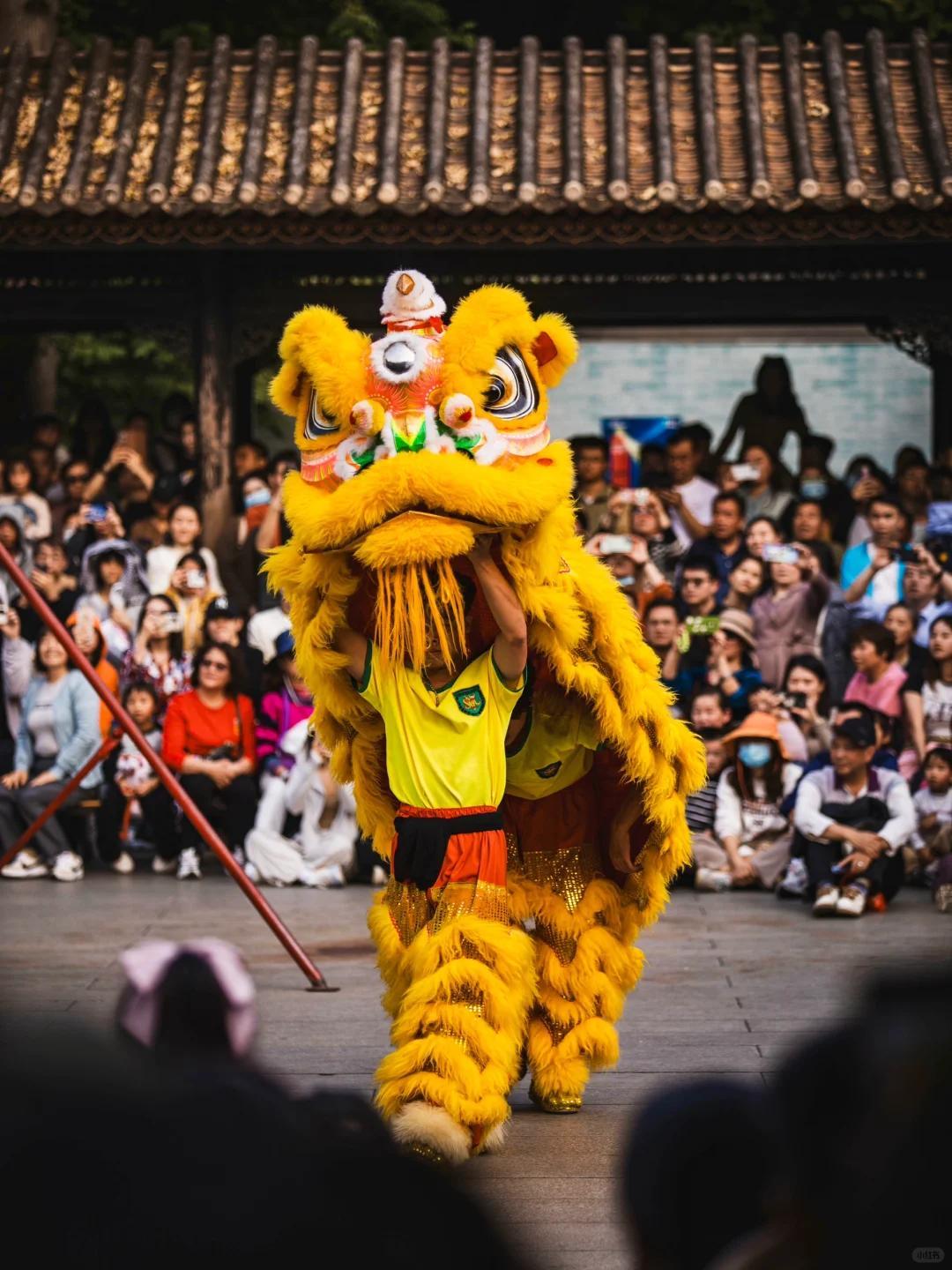 春節期間,從年初一到年初八,佛山祖廟每天都有多個時段的精彩醒獅表演。此外,在醒獅表演中,“摸摸獅頭”也象徵着接到好運。