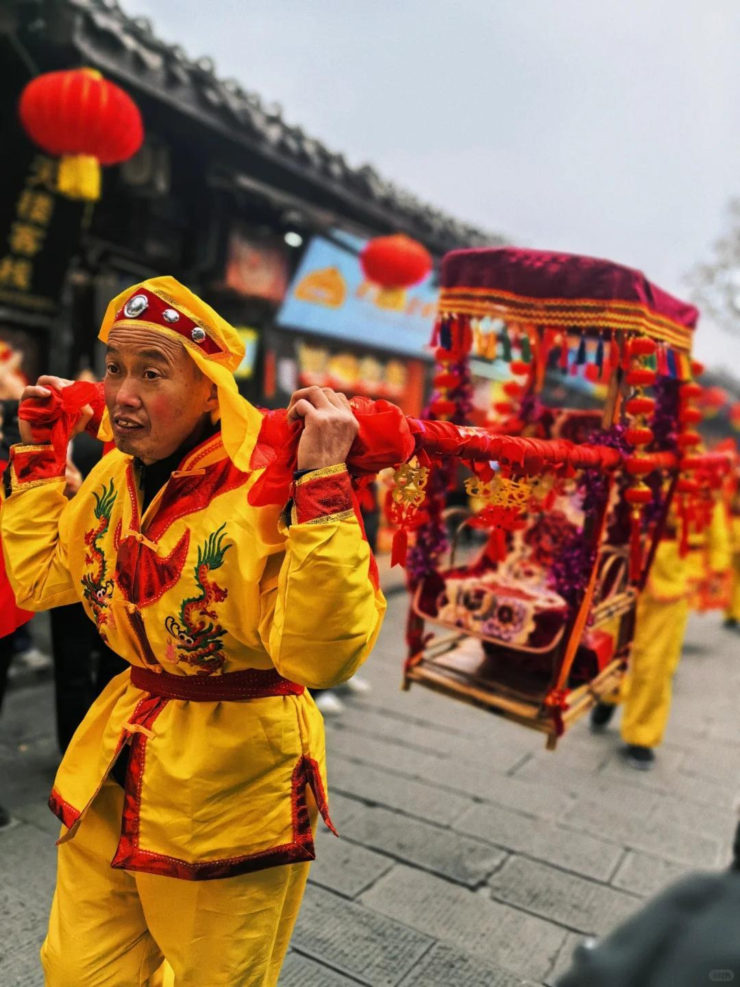 “老爺”和人一樣,也喜歡到處看看,於是青壯年肩扛八抬大轎,在鑼鼓喧天中、人頭攢動中帶着“老爺”遊遍村裏的大街小巷。