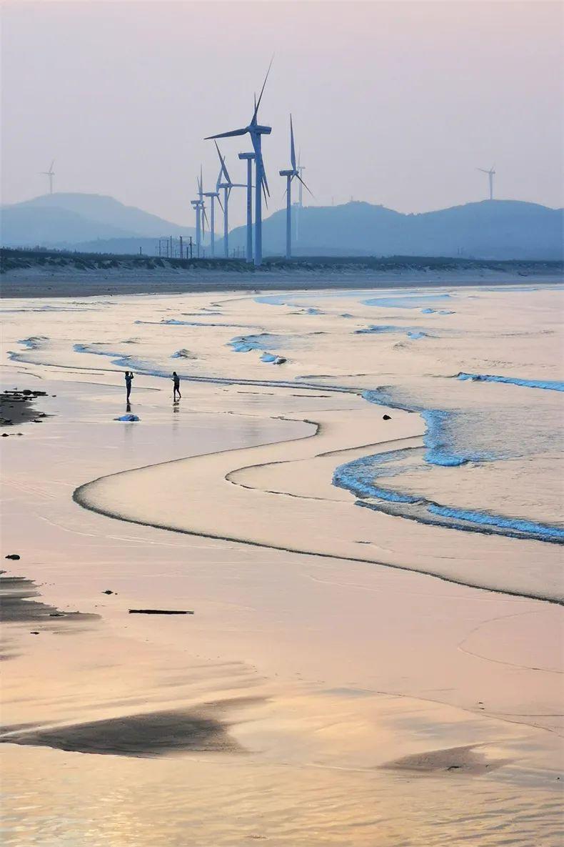 “風車田的故鄉”長江澳、美輪美奐的北部灣,那隨風舞動的大風車,襯着逶迤遠山,襯着蔚藍大海,襯着橘紅晚霞,美成了動漫裏的畫面,清新又夢幻。