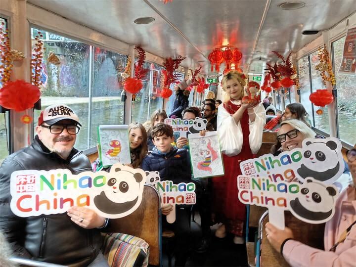 外國遊客體驗倫敦卡姆登集市運河的“你好!中國”花船巡遊 田愛軍 攝