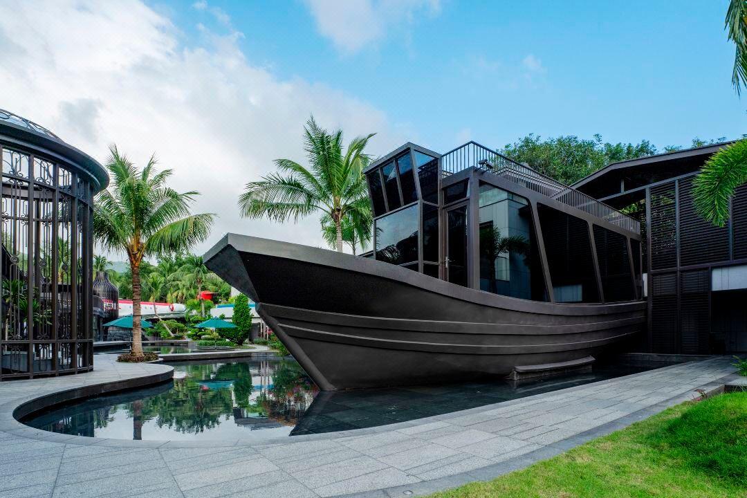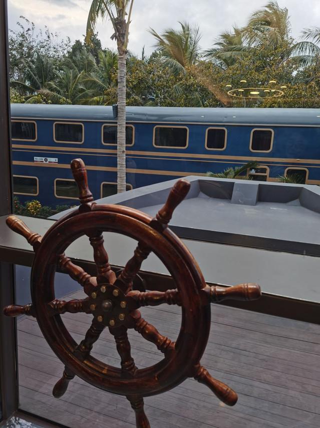 酒店的輪船茶室,還有舵輪,走出去就是一個船頭造型。