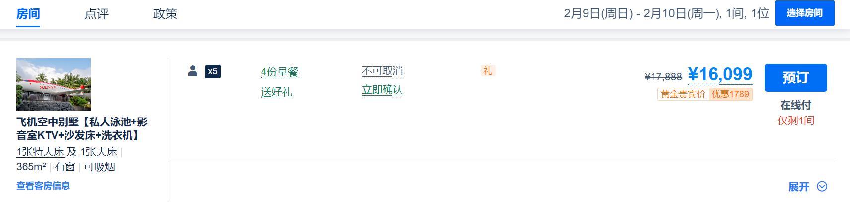 這架公務機也是客房,叫飛機空中別墅,春節期間一直到現在,每晚房價都在16099元。
