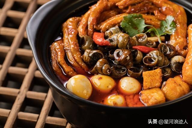 柳州的小喫同樣豐富多彩。金黃酥脆的螺螄鴨腳煲,鴨腳經過油炸和滷製後,皮酥肉嫩,輕輕一咬,骨頭便能輕鬆脫落,螺螄的鮮味融入鴨腳之中,兩者相得益彰;軟糯香甜的芋頭糕,選用當地優質芋頭,切成小塊與米粉混合蒸制而成,表面煎至金黃,外酥裏嫩,芋頭的香甜在口中散開,讓人慾罷不能;還有那香辣過癮的牛臘巴,牛肉經過醃製、烘烤等多道工序製成,肉質緊實,越嚼越香,是下酒的好菜,也是遊客喜愛的伴手禮。