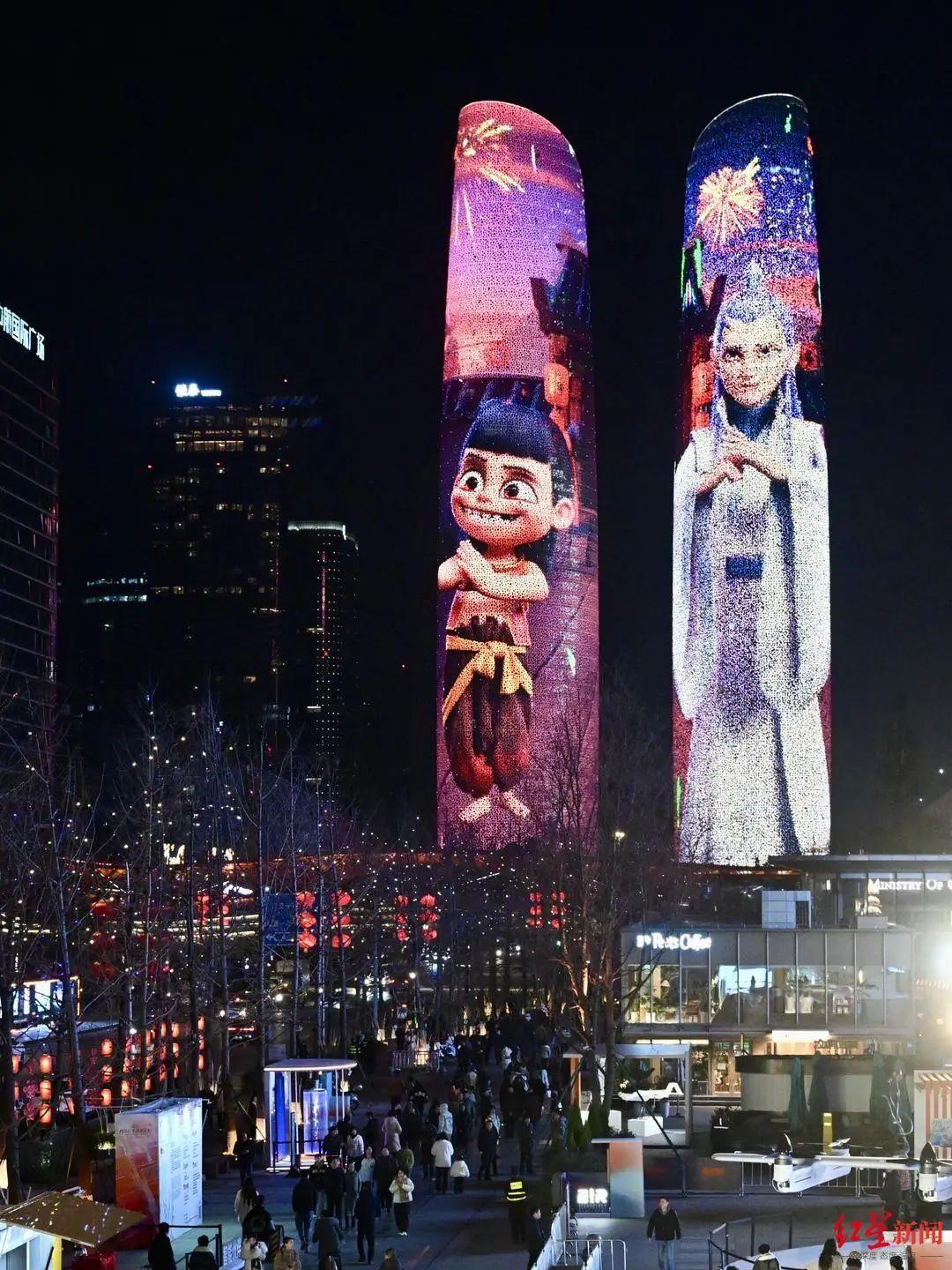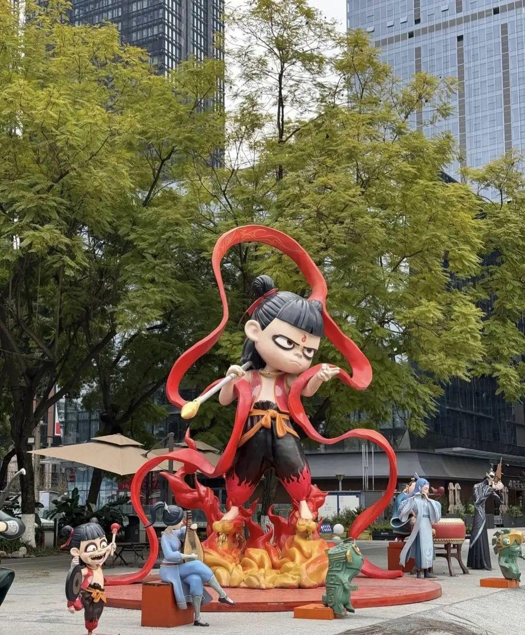 掛上了近10米高的巨型“哪吒”人形立牌