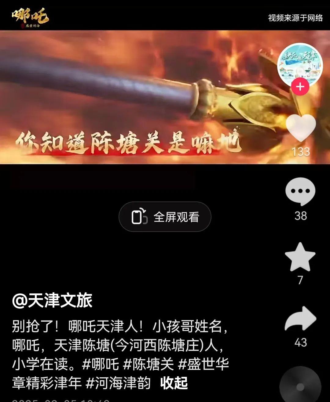 天津文旅:視頻喊話“別搶了!哪吒天津人!小孩哥姓名,哪吒,天津陳塘(今河西陳塘莊)人,小學在讀。”