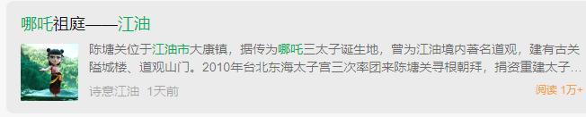 詩意江油:發文《哪吒祖庭——江油》,稱江油有翠屏山、乾元山、金光洞,是哪吒文化傳說的印證。