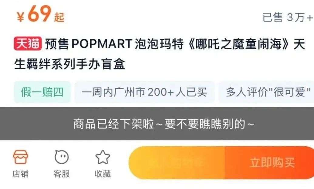 淘寶平臺上,《哪吒之魔童鬧海》天生羈絆系列手辦盲盒顯示銷量已超3萬,目前鏈接已下架。