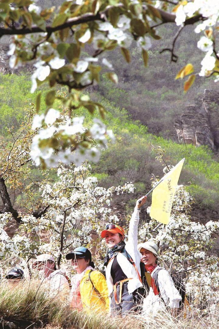 遊客在北京房山大灘村徒步賞梨花 記者 陳晨 攝