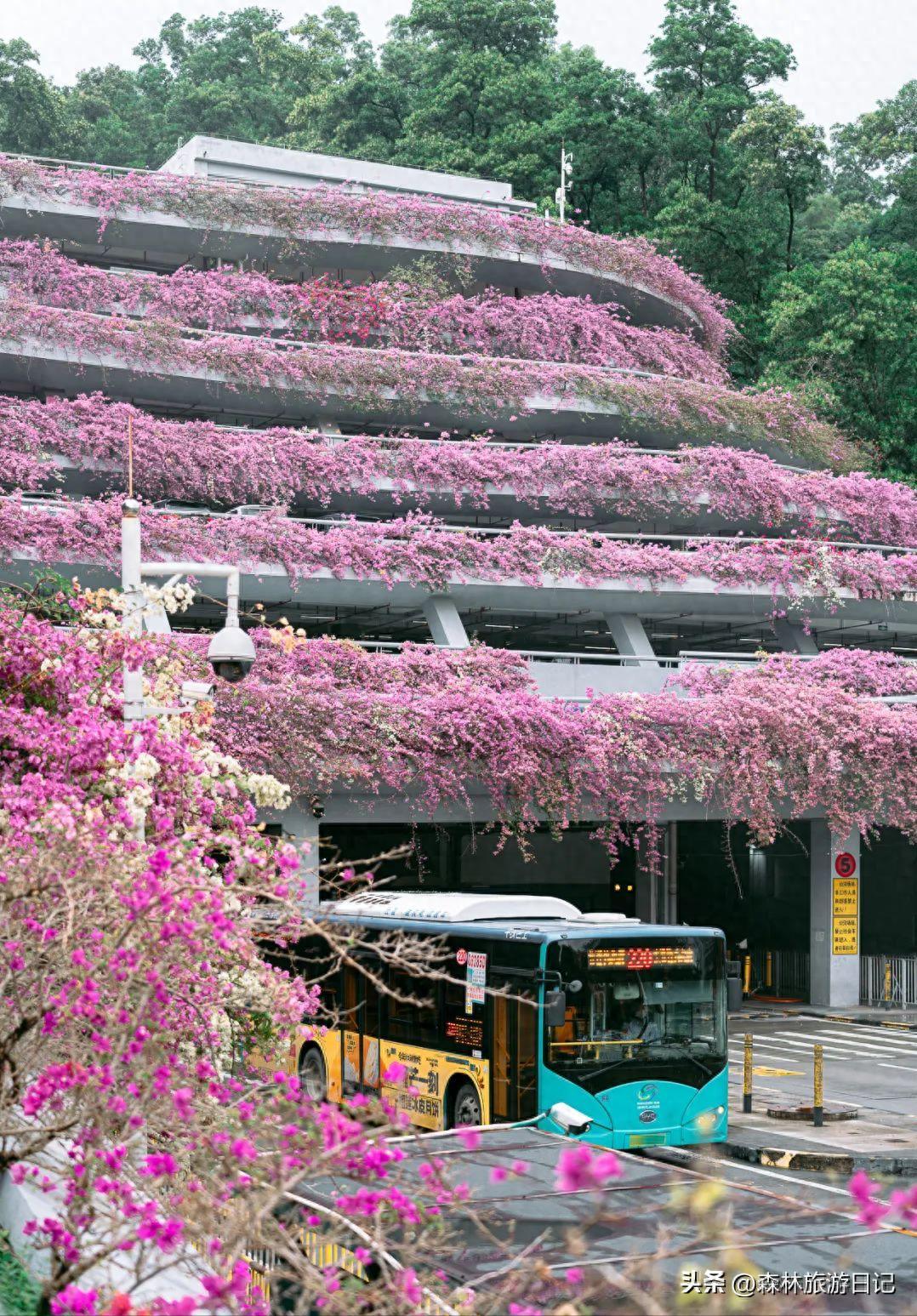最近網上熱議的賞花地點很多,其中,人氣最高的一定是仙湖植物園大門旁的6層停車場。現在整個停車場被染成了粉色,大簇下探的花枝組成花瀑,像瀑布飛流的快門定格。