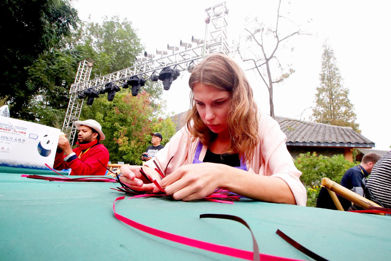 外國遊客在成都體驗非遺技藝 中國旅遊報記者 陳晨 攝