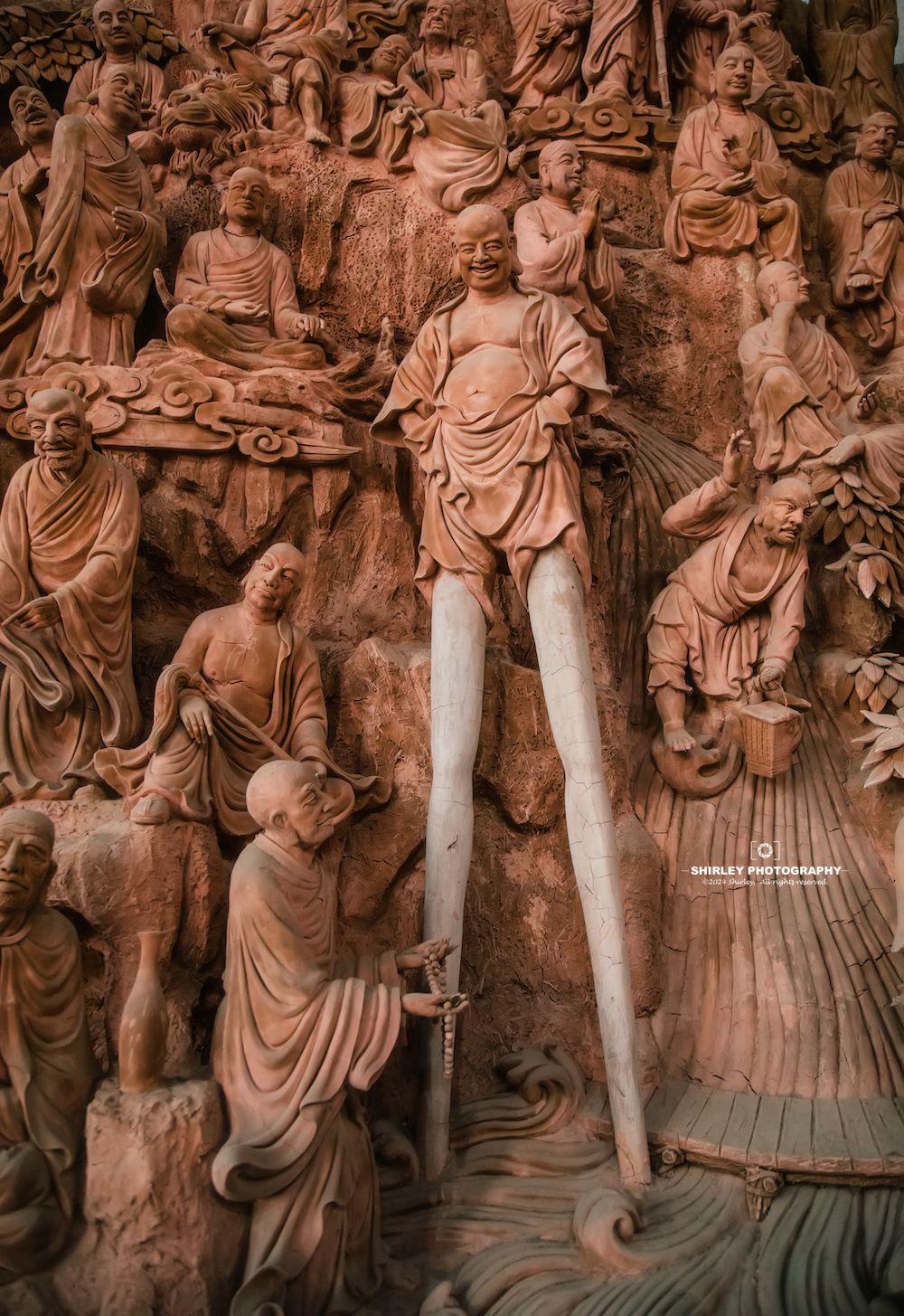 明月古寺最具看點的還是大雄寶殿裏那一堂耗時一年打造的紫砂泥雕塑,規模之大和工藝之精緻令人讚歎。五百羅漢形態各異,栩栩如生,因這一雕塑羣的盛名,也吸引了衆多攝影與藝術愛好者的關注,明月古寺也隨之被讚譽爲 “蘇州小西天”。