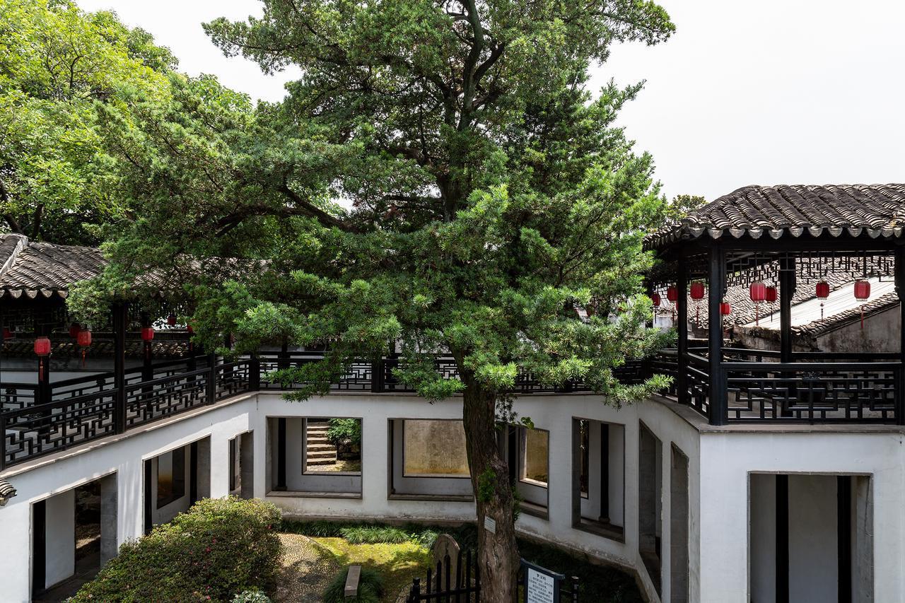 後園亭臺樓閣、水榭迴廊錯落有致,登上假山或二層迴廊可俯視園中景緻。後園巧妙運用借景、障景等手法,將自然美與人工美完美融合。最具標誌性的就是一棵明代古松,位於鬥折幽曲的雙層長廊邊,樹齡逾500年,高逾十米,依然蔥翠蒼勁。