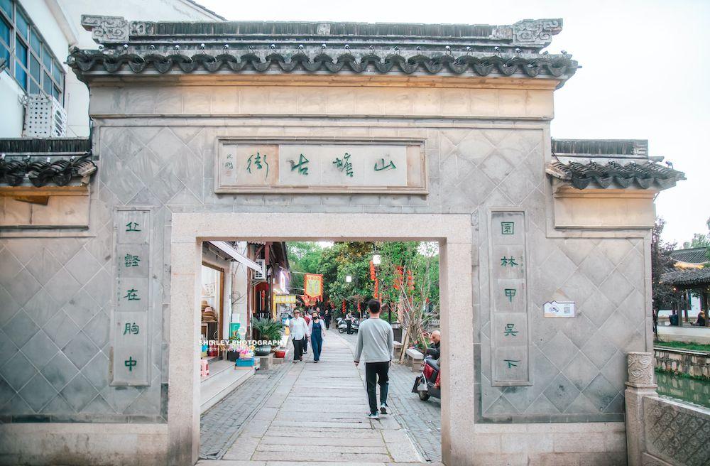 山塘街可謂是木瀆鎮的縮影,這裏依水成街,因水興市,窄街深巷各有故事。順着青石板路慢慢走,聽吳音軟糯,餘韻悠長;古橋形態各異,普濟橋、西施橋等橫跨河面,小橋流水,洋溢着濃郁的江南風情。