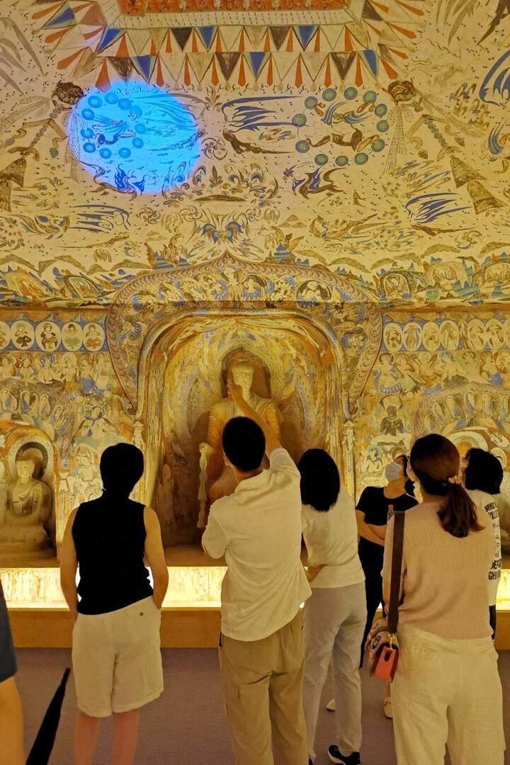 “如是莫高”敦煌藝術大展中的複製洞窟是敦煌研究院採用高分辨率的數字攝影技術,對洞窟壁畫進行1:1的高保真複製。這種複製保留了壁畫的細節,儘可能還原了其質感和色彩。踏入複製洞窟,觀衆會被敦煌壁畫細膩入微的筆觸和絢麗的色彩深深感動。“之前去莫高窟沒看過癮,這次過足癮了。”柳林韻說。