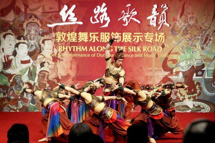 當數字時代來臨,敦煌文化不斷融入生活。中國美術館還舉辦了“絲路歌韻:敦煌舞樂服飾展示專場”,以歌舞與服飾展示相結合的形式,弘揚絲綢之路文化,豐富公衆藝術體驗。